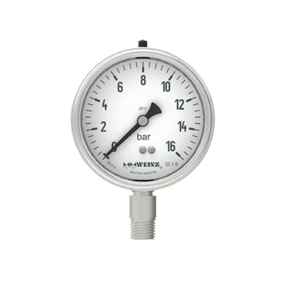 Incorpora un sistema de medición mediante tubo Bourdon en acero inoxidable, lo que garantiza estabilidad, precisión y durabilidad en procesos con condiciones variables. Su diseño compacto de 2.5” permite una fácil instalación en equipos y sistemas donde el espacio es limitado, manteniendo una lectura clara y precisa.